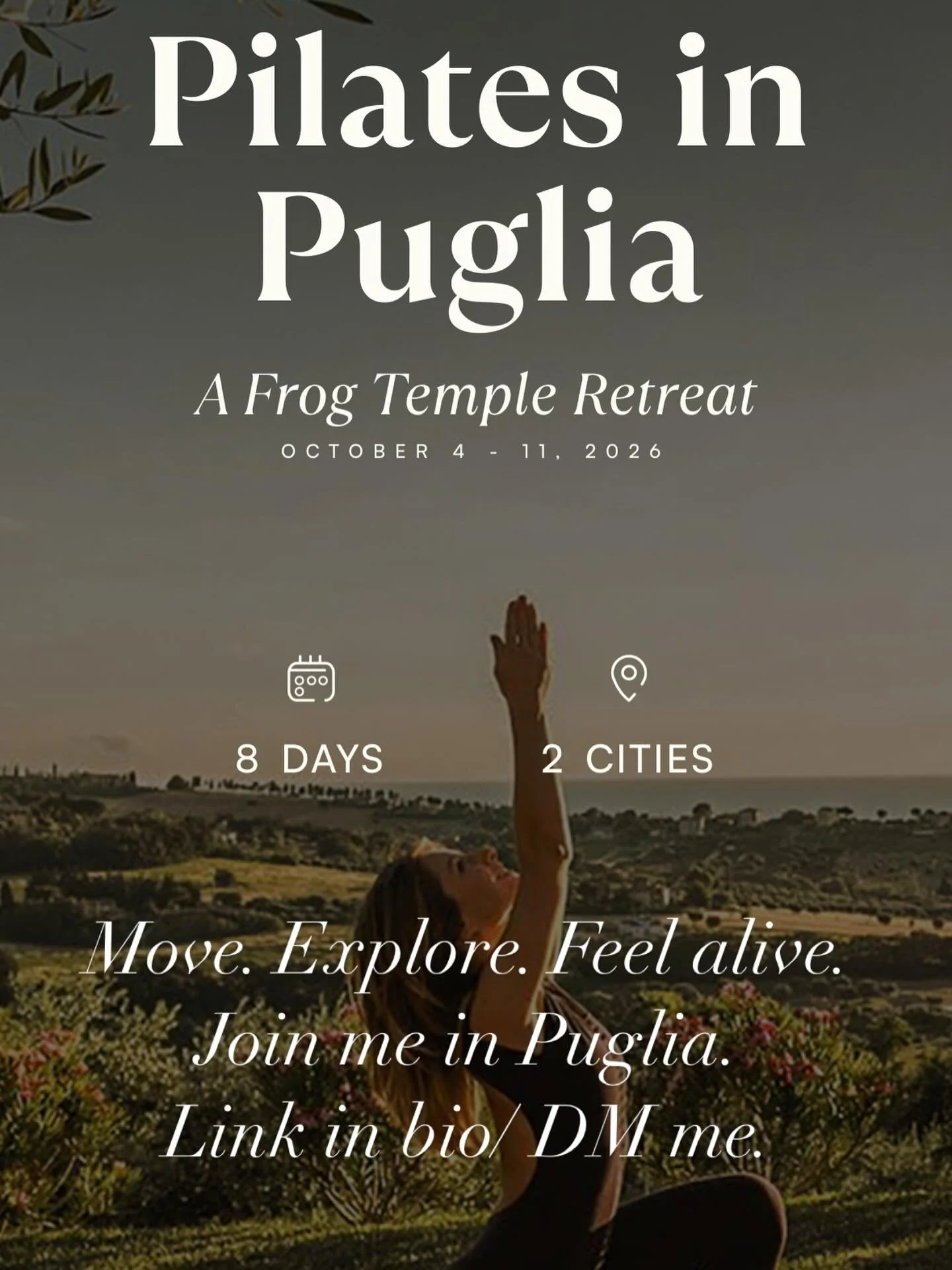 Thoughtful Pilates in the morning. Italian adventure in the afternoon. Swim in the Adriatic, hike the coast, sail, explore local crafts, and savor the magic of Puglia.